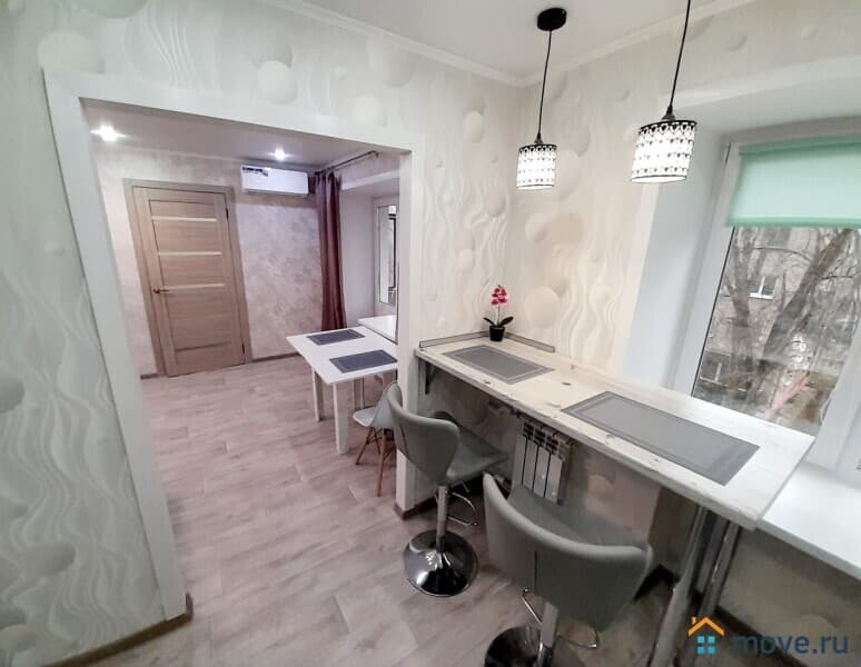 - Мебель: кухонный гарнитур, барная стойка, стулья, диван, кровать, стол, тумбочки – всё для вашего комфорта!