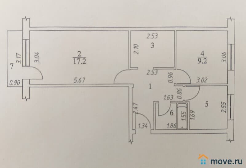 Общая площадь - 47,4 кв.м, жилая площадь - 26,4 кв.м. Застеклённый балкон.
